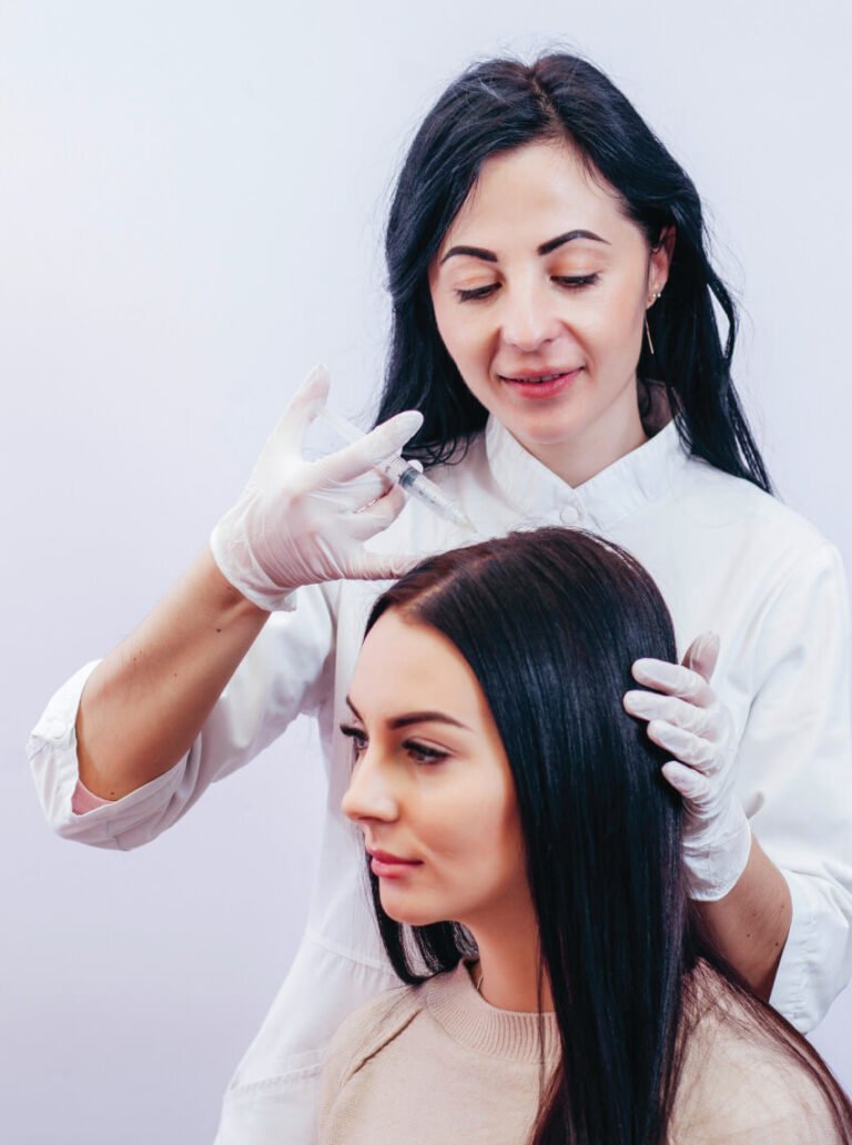 The PRP injection promotes hair growth by stimulating the hair follicles and prevent further hair loss